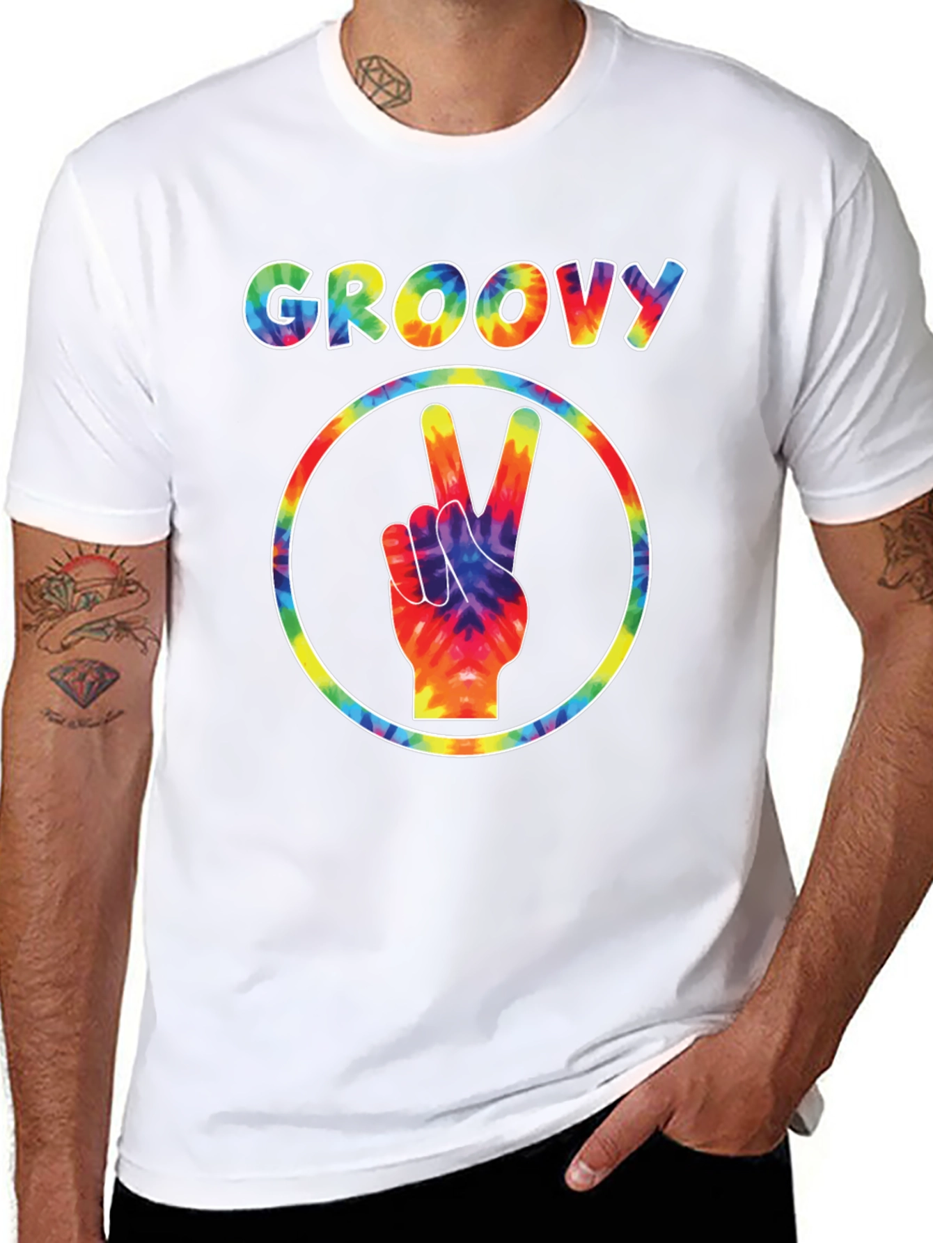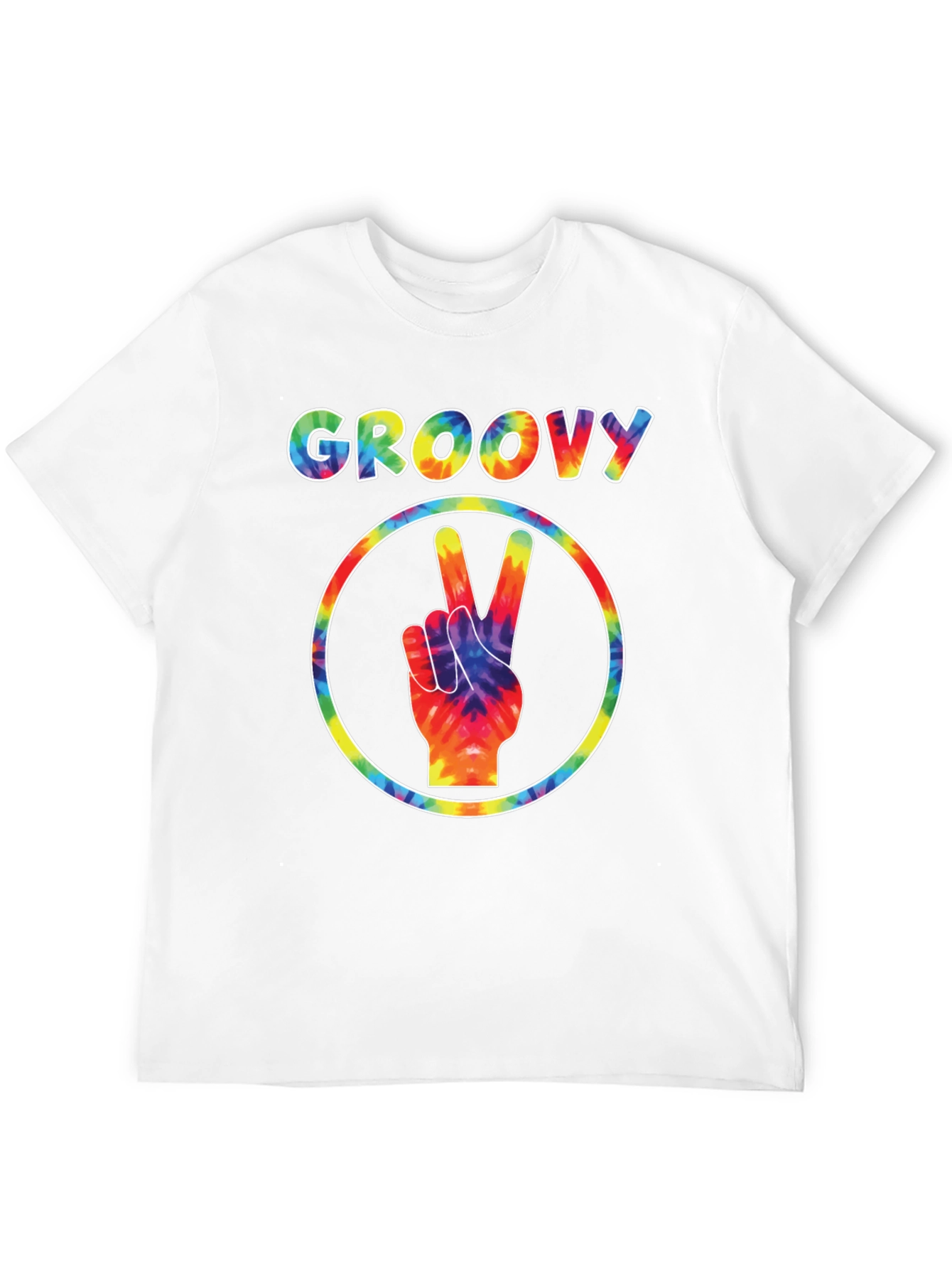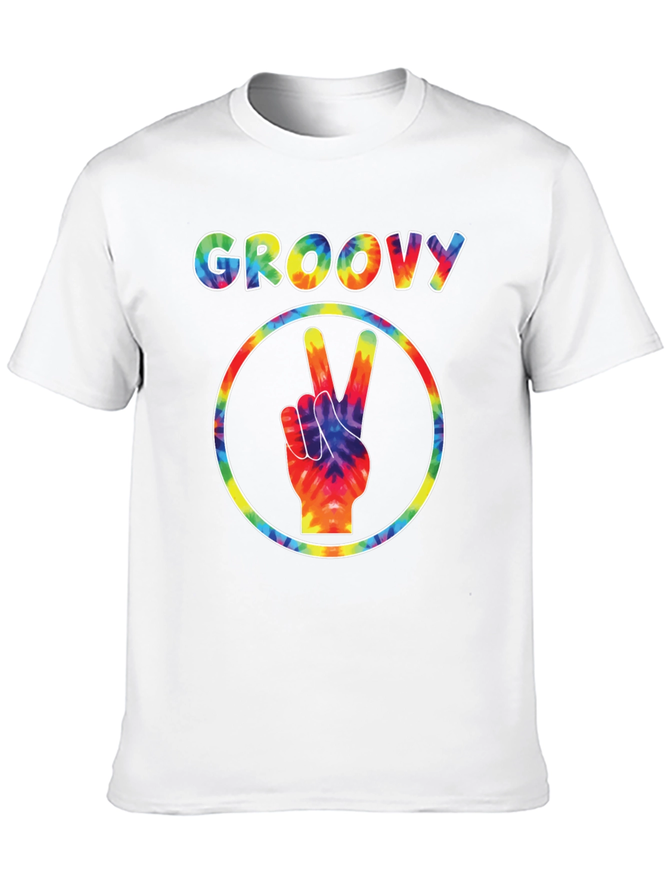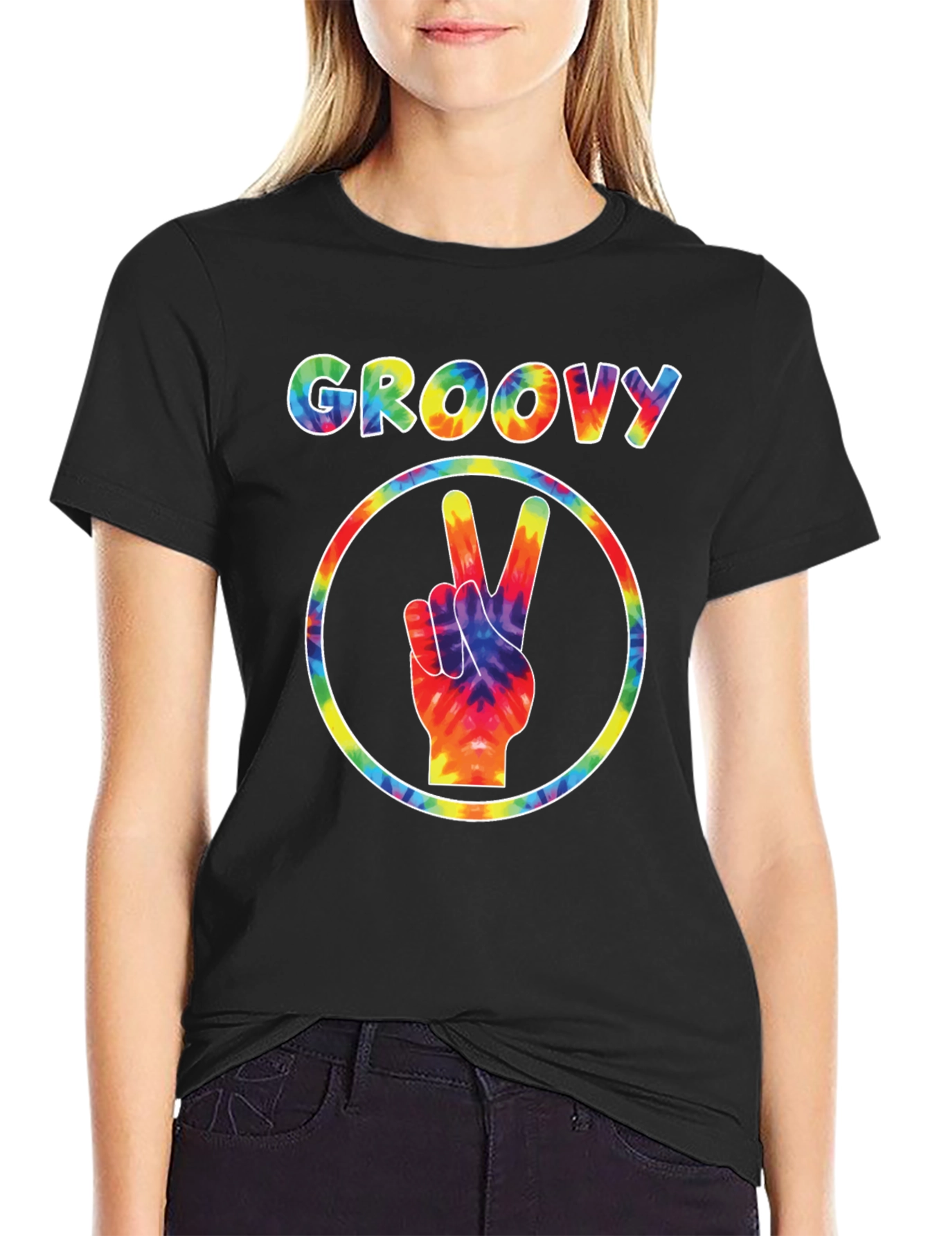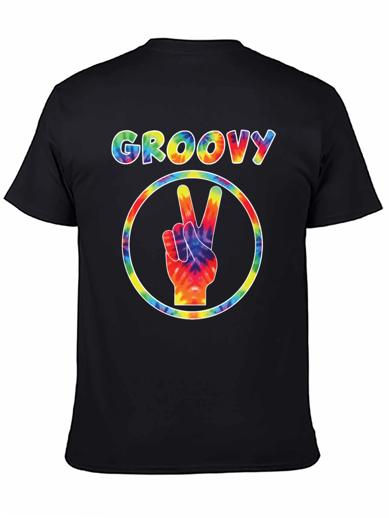 Show off your groovy side with this vibrant black t-shirt! Featuring a bold tie-dye "Groovy" text design above a peace sign hand gesture inside a circle, all with a colorful tie-dye pattern. The classic crew neck and short sleeves make it perfect for casual wear. Made from a comfortable, breathable fabric, this shirt is ideal for everyday wear, music festivals, or expressing your unique style. A fun and stylish addition to any wardrobe, this tee is sure to turn heads and spread positive vibes wherever you go.