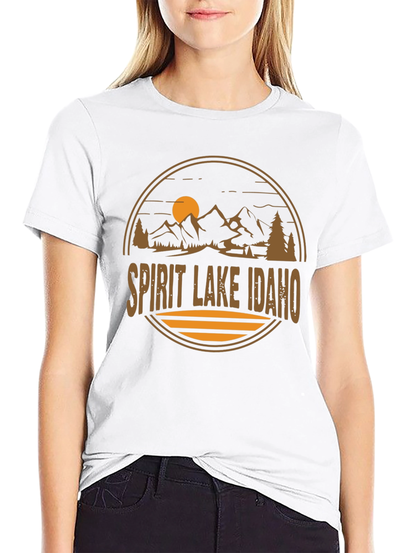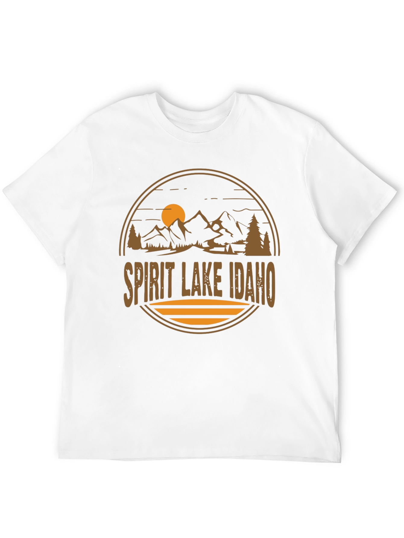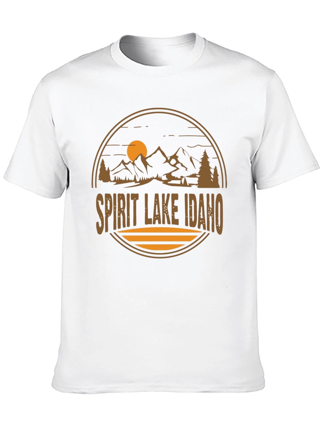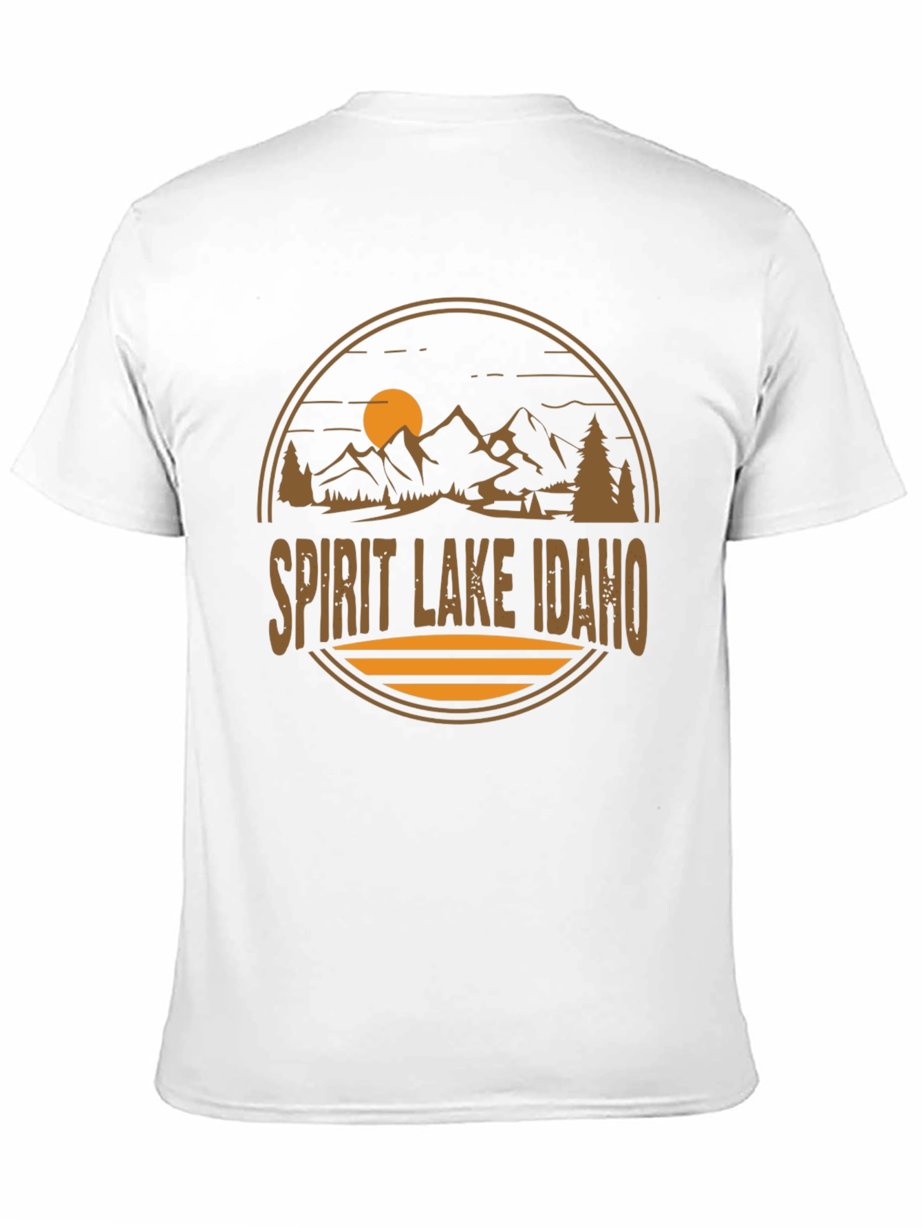 Show your love for Spirit Lake Idaho with this stylish graphic t-shirt. The shirt features a unique circular design with mountains, trees, and a setting sun. The text "SPIRIT LAKE IDAHO" is prominently displayed, making it perfect for locals and tourists alike. Made from comfortable, breathable fabric, this tee is ideal for everyday wear. Whether you're hiking, relaxing by the lake, or simply running errands, this shirt is sure to become a favorite. The dark color and durable print ensure it will look great wash after wash. Get yours today and celebrate the beauty of Spirit Lake!