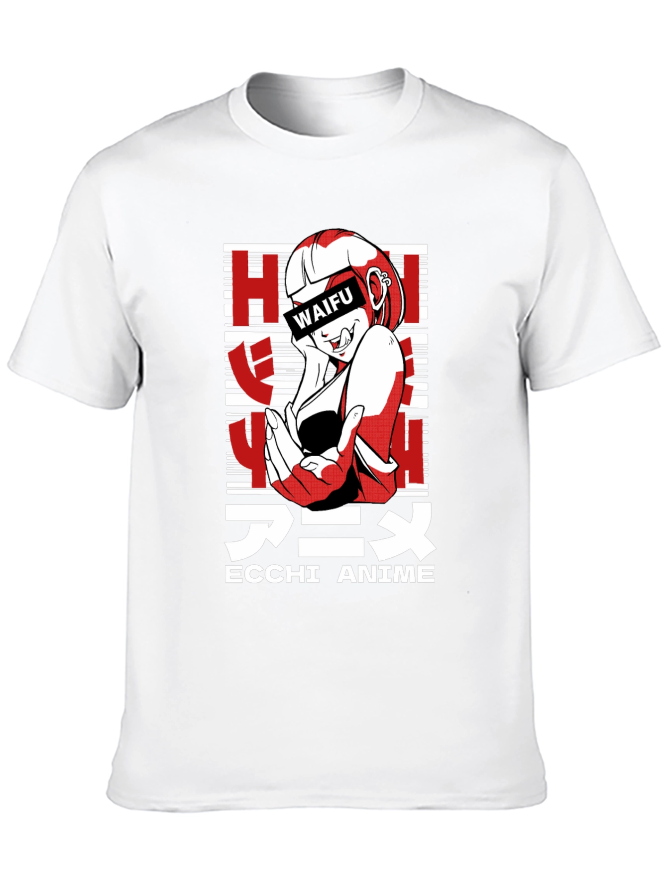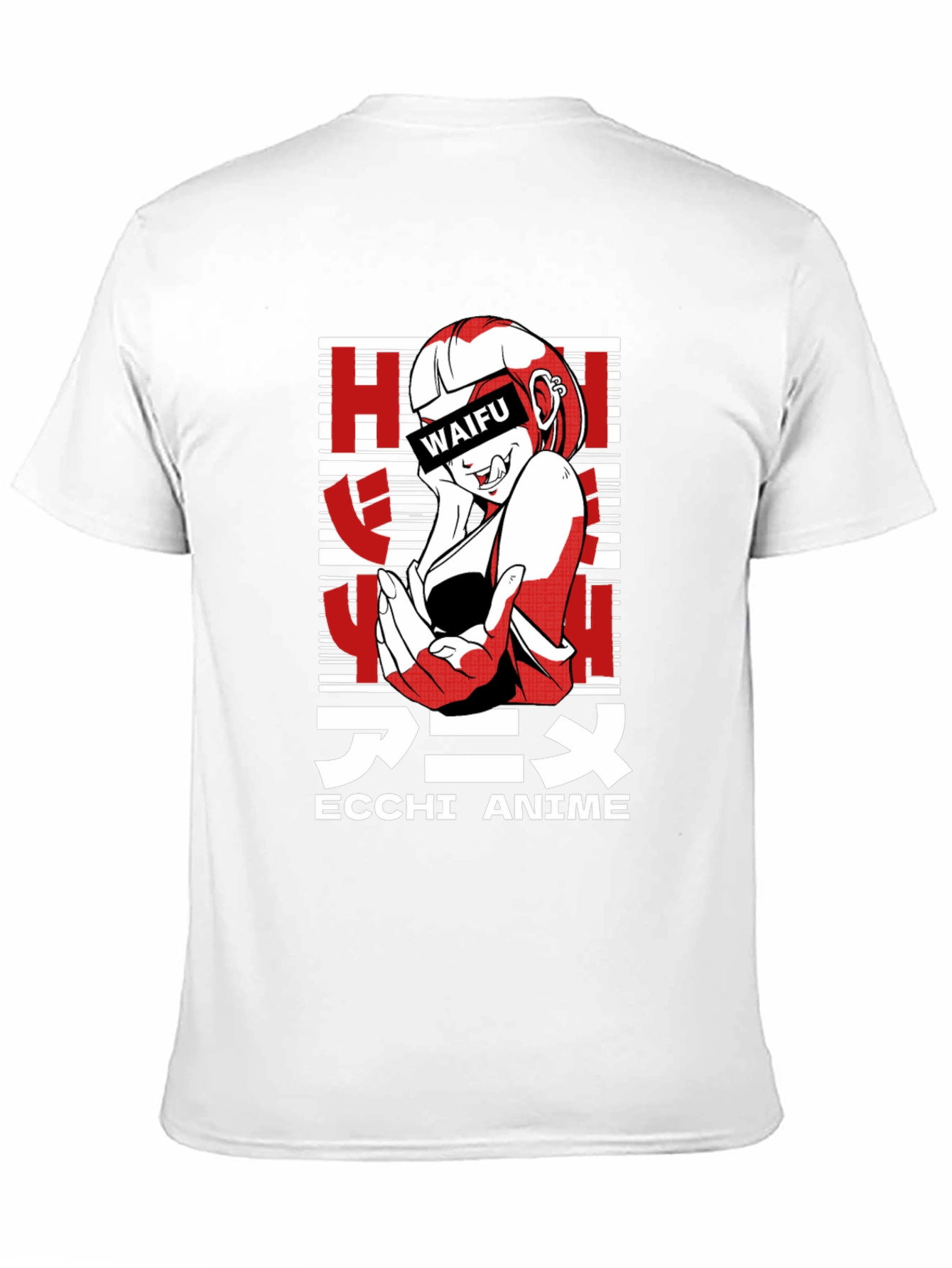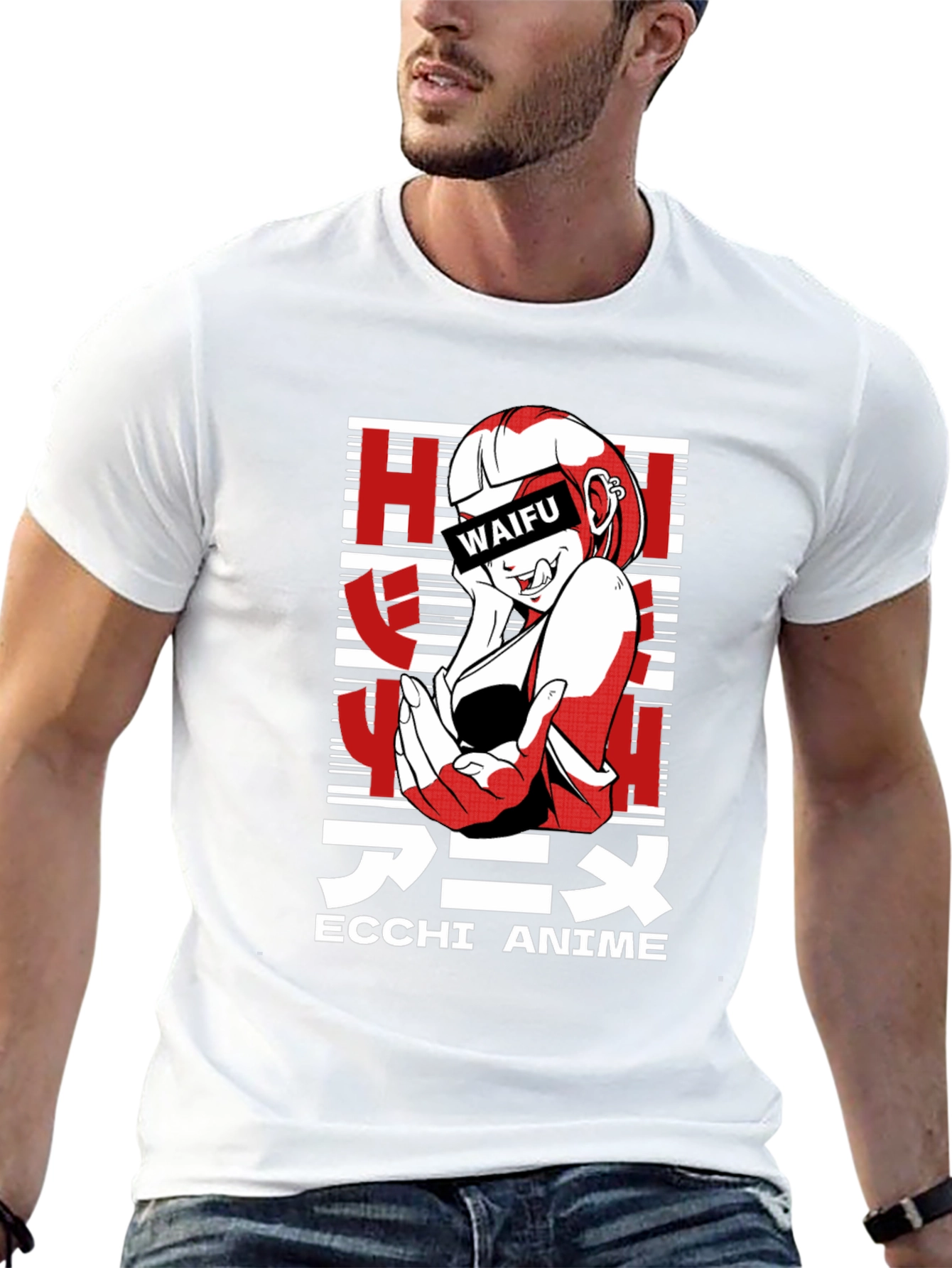 Show off your unique style with this eye-catching black T-shirt! Featuring a bold graphic of an anime-inspired character with red and white highlights, this tee is sure to turn heads. The design incorporates Japanese text and the words "Ecchi Anime" for added flair. Made from comfortable materials, it's perfect for casual wear, conventions, or expressing your love for anime culture. Pair it with jeans or shorts for an effortlessly cool look. This tee is ideal for anime enthusiasts who want to make a statement. Get yours today and stand out from the crowd!