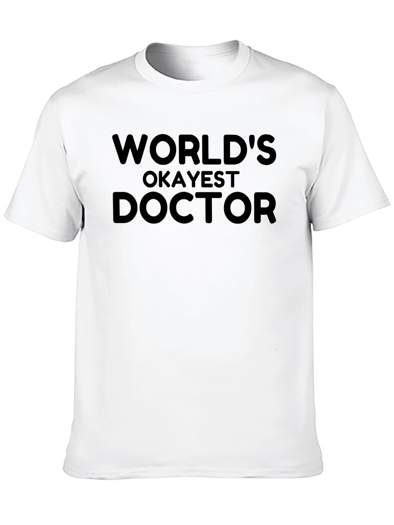 This classic black t-shirt features a humorous phrase that reads, "World's Okayest Doctor." The simple yet bold font ensures the message stands out. Made from what appears to be a soft and comfortable cotton blend, this shirt is perfect for everyday wear. Its relaxed fit makes it ideal for casual outings, lounging at home, or even wearing to a doctor's office for a lighthearted touch. This t-shirt makes a great gift for doctors with a sense of humor or anyone who appreciates a funny and relatable statement tee. Add a touch of fun to your wardrobe with this unique and comfortable shirt.